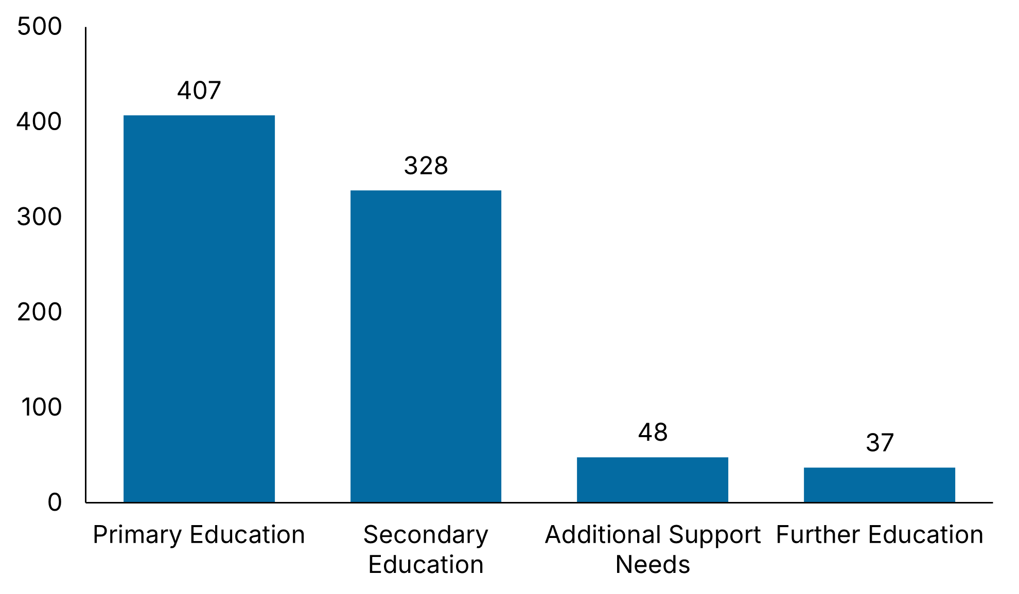 The remaining 8 individuals were grouped into Other/not known (Non-UK Schools, Not Currently Working, Other, Supply Teaching, UK (Not Scotland), University or Blank).