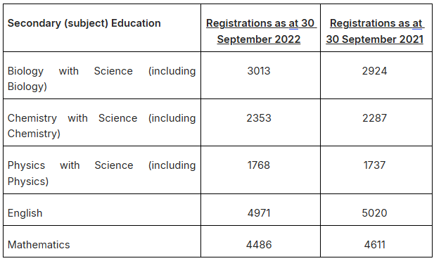 “As a follow-up to my previous FOI requesting numbers of teachers holding physics, biology and chemistry, could you please provide the numbers on the register on 30 September on the following years: 2022, 2021, 2020 and 2019?”